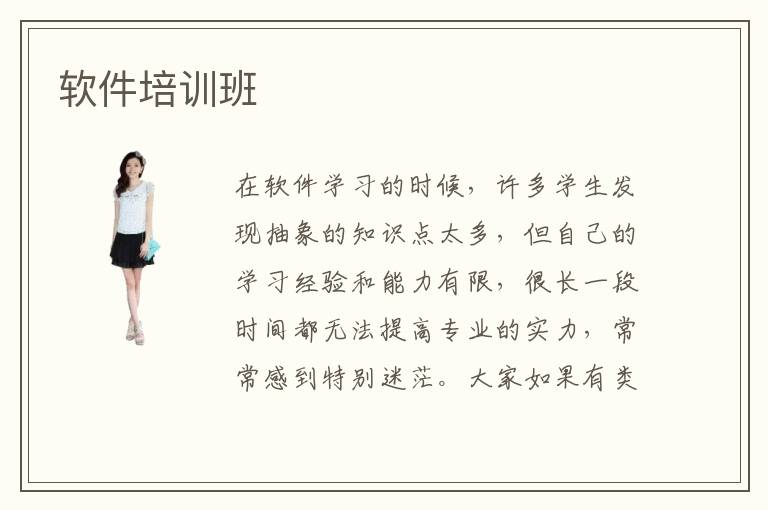 在软件学习的时候,许多学生发现抽象的知识点太多,但自己的学习经验和能力有限,很长一段时间都无法提高专业的实力,常常感到特别迷茫。大家如果有类似经验,可以看看软件培训班,了解各种优质教学课程,尤其是软件培训班实践课程,通过老师的严格辅导,提高动手的能力,在以后的软件应用中,体现出优质的水准。软件培训班时间非常灵活,比如许多学生会考虑在线指导的方式,在家里即可上课,平时晚上或者是白天,都可以打开电脑学习,不用受到空间与时间限制,确实非常自由。其实目前的技术非常先进,通过网络教学的方法,课程非常稳定,内容也非常多。所以学生要认真做准备,适当关注不同的方案和学习方法,积累足够多的经验,从而拥有更高的学习价值。