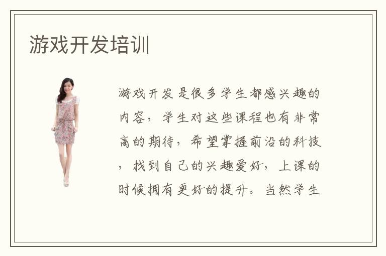 游戏开发是很多学生都感兴趣的内容,学生对这些课程也有非常高的期待,希望掌握前沿的科技,找到自己的兴趣爱好,上课的时候拥有更好的提升。当然学生不能只看到学习的好处,还应该多关注各种学习的方法和难以突破的地方,针对自己未知领域,进行细致的学习,及时查漏补缺,进步空间会更大。而现在有非常多专业的游戏开发培训机构和课程,可以满足学生的要求,突出学习重点,发挥更好的补习优势。游戏开发培训气氛非常不错,大多数学校都有很好的教学方案,提供全面的辅导内容,所以学生总是可以在轻松的环境下学习。游戏开发培训方式非常丰富,比如在线指导教学,就业指导课程,职场实践教学等等,让大家可以将理论知识与实践融合起来,与工作的技能接轨。