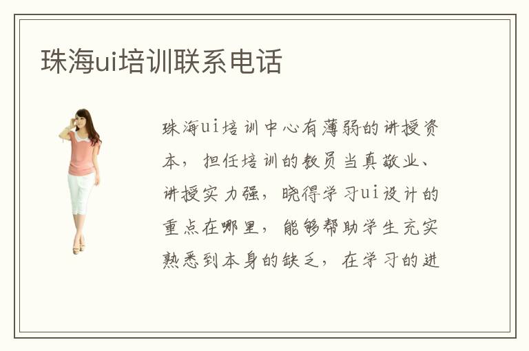 珠海ui培训中心有薄弱的讲授资本,担任培训的教员当真敬业、讲授实力强,晓得学习ui设计的重点在哪里,能够帮助学生充实熟悉到本身的缺乏,在学习的进程中很较着地感觉到学生的生长和前进。相干成绩,可以咨询珠海ui设计培训机构的接洽电话领会相干实况。珠海ui培训机构接洽电话是多少呢珠海ui培训机构电话号码在哪里可以查询到珠海ui培训接洽电话推荐电脑学校