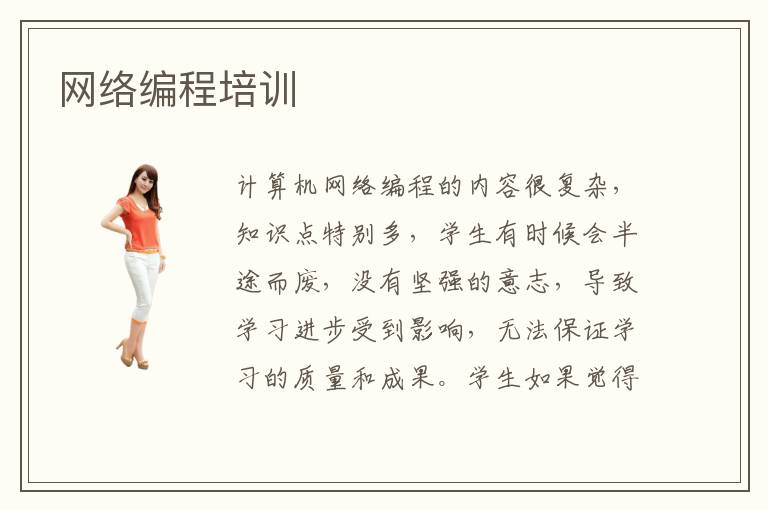 计算机网络编程的内容很复杂,知识点特别多,学生有时候会半途而废,没有坚强的意志,导致学习进步受到影响,无法保证学习的质量和成果。学生如果觉得自学非常困难,没有办法完成学习的规划和任务,可以参与网络编程培训,挑选专业的教学课程,从而在原有的基础上,要有更好的进步和提升。网络编程辅导难不难,多数课程都不会很难,主要就是从简单的开始学习,然后逐渐增加难度。网络编程培训师资比较优越,许多学生在网络编程学习时,会感觉到迷茫和焦虑,不知道如何调整心理状态,而且学习动力比较少,所以会遇到许许多多的难题,但是补习机构会帮助学生快速分析,选择个性化比较突出的课程,也会针对学员的基础,选择对应性辅导方式,使大家的应用和专业能力都有变化。