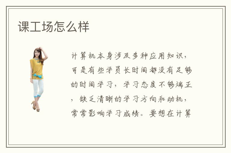 计算机本身涉及多种应用知识,可是有些学员长时间都没有足够的时间学习,学习态度不够端正,缺乏清晰的学习方向和动机,常常影响学习成绩。要想在计算机领域有更强的发展优势,可以考虑某些教学机构,由老师确定一些重要的学习方向,学习动力会有更好的改善。大家可以多看看课工场怎么样,了解一些很好的补习方法和教学课程,进展会有充分的体现。课工场内容多吗,课工场培训机构的教师辅导内容很丰富,老师可以提供全方位指导,利用精致的补习课程,让大家的学习质量有明显的进步。课工场远程辅导课程更加注重应用的教学方案,而且每个阶段都有严谨的教学内容。更重要的是,远程教学不受时间控制,在家里或者教室,选择周末或者是其他碎片的时间都可以上课。