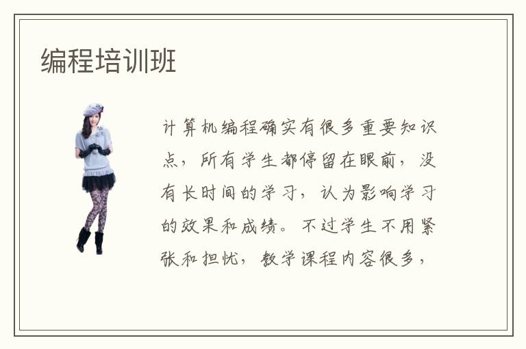 计算机编程确实有很多重要知识点,所有学生都停留在眼前,没有长时间的学习,认为影响学习的效果和成绩。不过学生不用紧张和担忧,教学课程内容很多,但是要慢慢积累知识,制定长远的规划,调整好自己的心态,针对学习的缺点,进行适当的弥补,优化自身的知识结构,争取得到更好的学习优势。编程培训班有非常强的实践能力,在培训方面有多年经验,关注学生的问题,通过多样化的课程,让大家从多个方位了解计算机编程的内容。编程培训班周末指导可以节省大家的时间,周末的学习效果比较好,充分利用业余时间,实现弯道超车的机会。编程培训班难度不会很高,老师有非常细致的辅导方式,不断完善教学课程和课程体系,教学质量快速上升,赢得更多学员的认可。