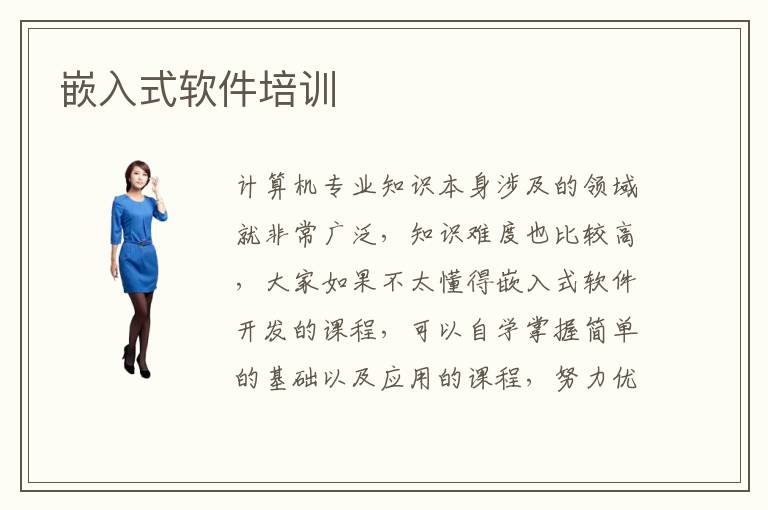 计算机专业知识本身涉及的领域就非常广泛,知识难度也比较高,大家如果不太懂得嵌入式软件开发的课程,可以自学掌握简单的基础以及应用的课程,努力优化自身的实力。要是仍然觉得难度有点大,可以考虑嵌入式软件培训专业课程,老师有多年的教学经验,可展示许多重要的科技,关注学生在发展过程可能遇到的问题。嵌入式软件培训班口碑相当不错,主要原因是提供优越的辅导课程,不断完善教学体系,在不同阶段,都会制定对应性的课程方案,使大家的应用成绩和学习成绩拥有显著的提升。嵌入式软件培训内容多不多,嵌入式软件培训课程内容很丰富,许多学生对自己的成绩都不太满意,选择计算机辅导机构,让大家对这些课程有深度的了解,不用担心效率太差,或者是理解太浅的情况。