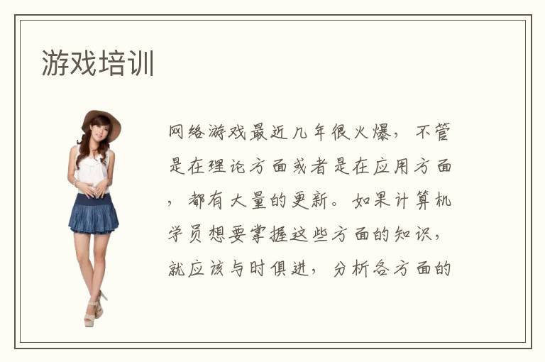 网络游戏最近几年很火爆,不管是在理论方面或者是在应用方面,都有大量的更新。如果计算机学员想要掌握这些方面的知识,就应该与时俱进,分析各方面的应用,掌握一些前沿的知识,不能够掉以轻心。有些学生想要找到某些专业的游戏培训机构,完成老师布置的课程,从而努力优化自身的学习技能。游戏培训是非常值得考虑的,主要在于教学体系很完善,老师资源很多,帮助学生缓解各种就业竞争的压力。游戏培训有应用课程吗,应用课程很多,因为补习班也意识到,如果没有很好的应用课程,往往学生的操作能力会非常普通。游戏培训负担不会很重,老师可以通过多方位的讲解以及清晰的课程辅导方案,让大家的考试成绩更理想,学习的目标更明确,负担自然就会大大下降。