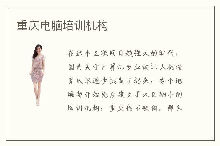 在这个互联网日趋强大的时代,国内关于计算机专业的it人材培育认识逐步挑高了起来,各个地域都开始先后建立了大巨细小的培训机构,重庆也不破例。那末,你晓得重庆电脑培训机构哪家好吗这里给人人推荐一家名叫的计算机专业培训机构,这是国内一家优异的互联网专业培训机构,口碑杰出,与国表里良多企业都有关作项眼。从结业的学生都由于他们的专业本质极高、专业妙技极强,遭到了重用。重庆电脑培训电脑培训机构推荐电脑学校
