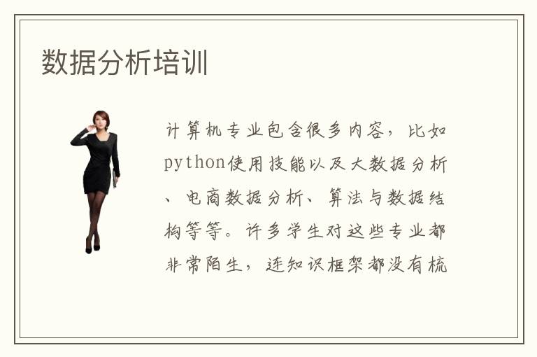 计算机专业包含很多内容,比如python使用技能以及大数据分析、电商数据分析、算法与数据结构等等。许多学生对这些专业都非常陌生,连知识框架都没有梳理清楚,更不要说熟练应用在工作上面。其实也不必紧张,毕竟有非常多改变的方法,比如参与数据分析培训的课程,选择重要的补习方案,发挥自己的专业实力。数据分析培训好吗,大数据分析培训机构有好的复习课程,帮助学生掌握各种重点,培养学生的兴趣,拥有长远的进步。数据分析培训进度怎么样,数据分析培训机构的教育水准高,可提供多元化的学习体验,有助于增强学生的信心,掌握重要知识,缓解学习的压力,提高解题能力和分析能力。要是学生缺乏学习信心,不了解重点内容,老师都会及时给予清晰的解答。