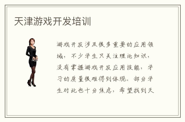 游戏开发涉及很多重要的应用领域,不少学生只关注理论知识,没有掌握游戏开发应用技能,学习的质量很难得到体现。部分学生对此也十分焦虑,希望找到天津游戏开发培训机构,由老师来辅导,提高个人的游戏开发应用水准。游戏开发培训多人吗,有些开发培训机构的报名人数大大上升,采用多方位的教学形式,包括理论培训、应用课程培训、项目案例分析、现场展示等等,使大家的成绩拥有显著上升。游戏开发培训得多长时间,大概是一个月到三个月,但学生自己的实力以及学习质量学习阶段不同,所以游戏专业学习难度和学习时间会存在差别。部分学生才刚刚开始接触游戏开发的专业,没有完善的知识框架,进展会非常慢,难度有点大,导致学习时间也会有所延长。