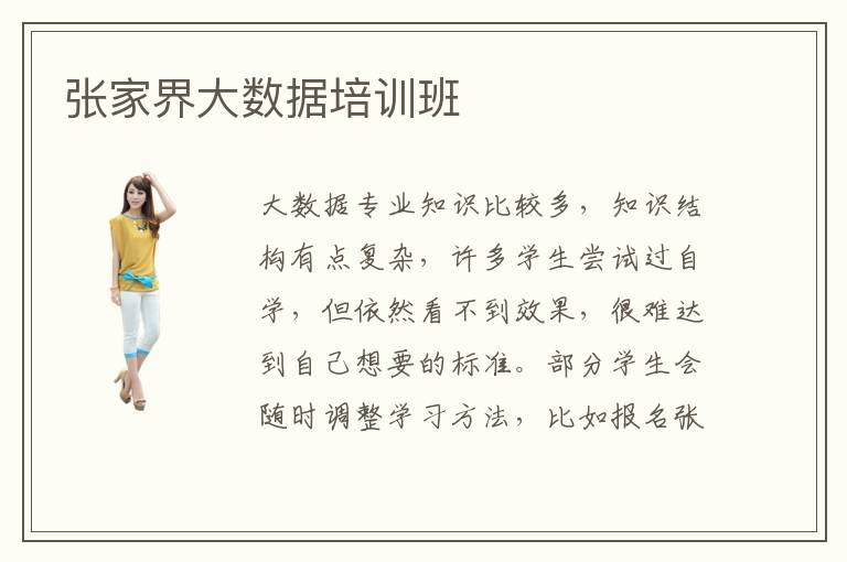 大数据专业知识比较多,知识结构有点复杂,许多学生尝试过自学,但依然看不到效果,很难达到自己想要的标准。部分学生会随时调整学习方法,比如报名张家界大数据培训大数据培训班,找到自己满意的大数据专业指导课程,得到更好的竞争能力。大数据培训班课程类型非常丰富,比如基础技术培训课程以及专项巩固课程,潜力开发课程等等,学生经过大数据培训班的指导后,会有非常好的学习成绩,真正体现优越的教学质量,从而使大数据培训班口碑越来越好。其实在大数据专业学习时,许多学生没有信心,复习的内容不够全面,常常会出现厌烦的情绪。专业老师往往会将大数据专业内容分为多个部分,通过有条不紊和随时渐进的学习方式,让大家在不同阶段,掌握不同难度的课程。