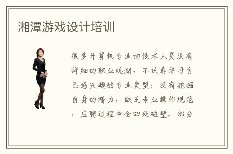 很多计算机专业的技术人员没有详细的职业规划,不认真学习自己感兴趣的专业类型,没有挖掘自身的潜力,缺乏专业操作规范,应聘过程中会四处碰壁。部分学生认为游戏开发专业对未来有很重要的作用,所以很重视这些课程,希望得到湘潭游戏设计培训,获得更强的技术优势和工作竞争力。游戏设计培训可信吗,要是学生不懂得游戏设计应用的知识,学习的效率很低,都可以报名这些补习的机构。游戏设计培训费用高吗,游戏设计培训班的大概费用是3000到1万元,其实有些学生报名之前,没有了解过各种方法,学习能力很糟糕,忽略掉重要的应用内容,就业优势很难凸显。而报名游戏设计培训班之后,效果会非常好,有助于改善大家的就业能力,从而带更优越的学习体验。