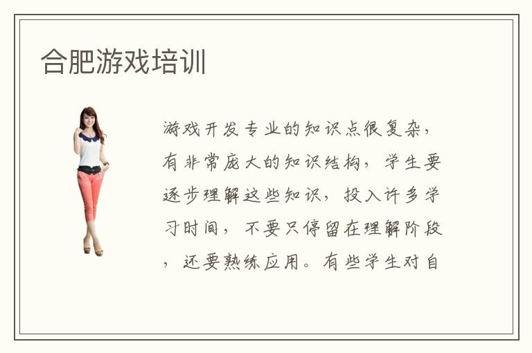 游戏开发专业的知识点很复杂,有非常庞大的知识结构,学生要逐步理解这些知识,投入许多学习时间,不要只停留在理解阶段,还要熟练应用。有些学生对自己的能力不是很满意,学习进度太慢,跟不上专业老师的上课节奏,不得不考虑合肥游戏培训课程,得到更多老师的直接帮助和辅导。游戏培训经验多吗,游戏培训机构的教学经验应该是比较丰富的,首先在于学校可制定完善教学体系,不同的学生都可以获得对应性的游戏专业辅导方案,学习效果更显著。游戏培训水准相当优越,老师一般情况下都会制定多种辅导课程,为学生带来不同阶段的训练。只要学生在某些阶段的能力不够强,缺乏发展方向,不懂得基础应用,老师都会进行详细讲解和分析,为大家带来更多游戏专业的应用训练。