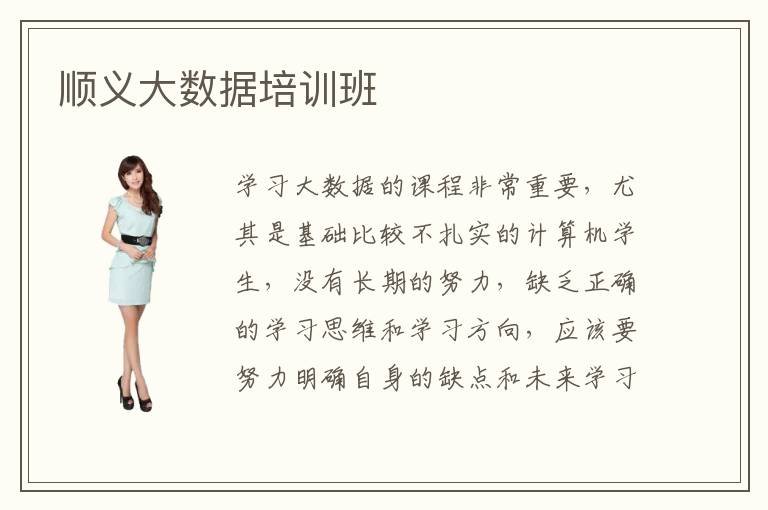 学习大数据的课程非常重要,尤其是基础比较不扎实的计算机学生,没有长期的努力,缺乏正确的学习思维和学习方向,应该要努力明确自身的缺点和未来学习目标,做好学习的准备。顺义大数据培训班特别多,专业水准也不错,在学生上课之前,学校的老师可提供大量的辅导方案,分析学习大数据专业的经验和技巧,为学生布置课堂任务,扫除大数据专业知识的难题。大数据培训班热度非常高,因为培训班作用明显,可以完成学生心理预期的目标,吸引众多学员报名。大数据培训班压力大吗,大数据培训机构的压力很小,因为老师可利用趣味性的教学辅导方案,为大家讲解大数据专业知识,通过现场教学以及分组讨论、在线课堂等等,丰富学生的体验,感受到大数据专业学习的乐趣。