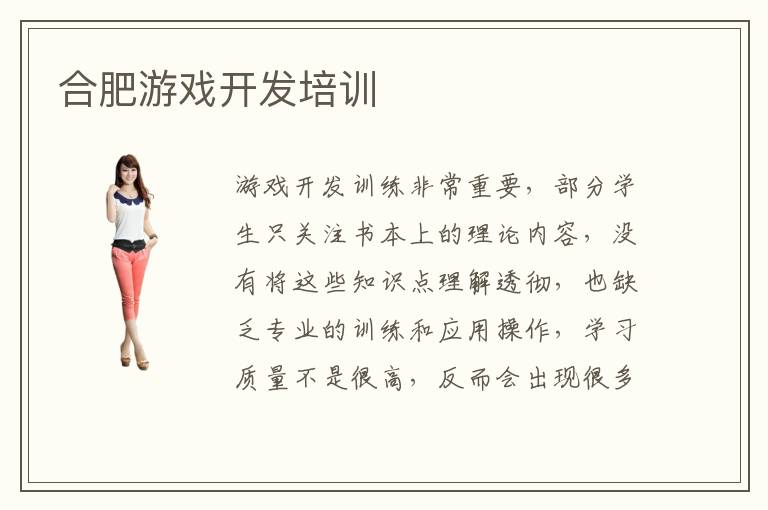游戏开发训练非常重要,部分学生只关注书本上的理论内容,没有将这些知识点理解透彻,也缺乏专业的训练和应用操作,学习质量不是很高,反而会出现很多难题。要是想发挥更好的游戏开发训练效果,学生可考虑合肥游戏开发培训学校,老师的课程非常全面,综合能力也很强,有助于为学生带来参考价值和引导作用。游戏开发培训成果如何,游戏开发培训机构的专业水准很强,为学生布置不一样的课程和个性化教学方案,分析学生的弱项,提供更多优质的辅导课。游戏开发在线教学是非常热门的,因为这些课程的作用很明显,有助于节约大量的游戏开发学习时间,促使学生高效率完成游戏开发的项目。而且老师会利用互联网教学的形式,控制学习节奏,安排完整的学习内容。