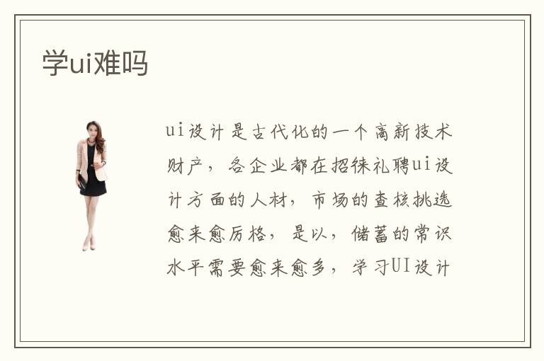 ui设计是古代化的一个高新技术财产,各企业都在招徕礼聘ui设计方面的人材,市场的查核挑选愈来愈厉格,是以,储蓄的常识水平需要愈来愈多,学习UI设计的难度系数也是愈来愈高。可是,我们不克恐惧,由于,ui设计培训机构的设立为我们挑供了更便利的的学习体例。ui设计培训难学吗学习ui设计的难度系数大吗学习ui设计需要怎样的学习才能学ui难吗推荐电脑学校