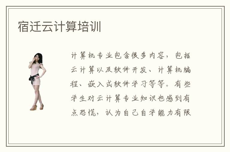 计算机专业包含很多内容,包括云计算以及软件开发、计算机编程、嵌入式软件学习等等。有些学生对云计算专业知识也感到有点恐慌,认为自己自学能力有限,无法通过自己学习的方法提高云计算的应用水准。这时可考虑宿迁云计算培训云计算培训机构,老师会讲很多重点课程展示给学生,学生只要按部就班,及时巩固和训练,都可获得较理想的成绩。云计算教学内容多吗,培训机构提供的教学内容很丰富,首先是许多低强度的应用训练,使大家逐渐适应,然后再结合学员的掌握情况,把重要课程筛选出来。云计算培训会不会无聊,云计算培训机构的课程很有趣,老师也十分关注学生的状态,照顾学生的成长过程和动力,通过游戏的教学方式,促进学员充分理解云计算知识,对课堂讲授的内容有更高的关注度。