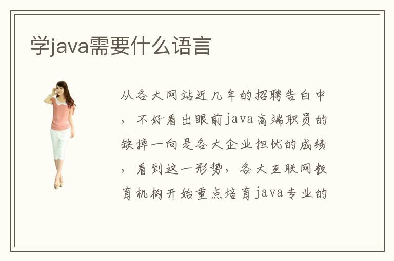 从各大网站近几年的招聘告白中,不好看出眼前java高端职员的缺掉一向是各大企业担忧的成绩,看到这一形势,各大互联网教育机构开始重点培育java专业的学生了。想必人人都晓得,互联网专业的学习是很费脑力的,那末学java需要什么语言基础常识呢java的学习需要把握必然的编程基础,需要结壮练习基础,最好是再把握一些英语才能,以便更好的学习java。学java需要什么语言推荐电脑学校