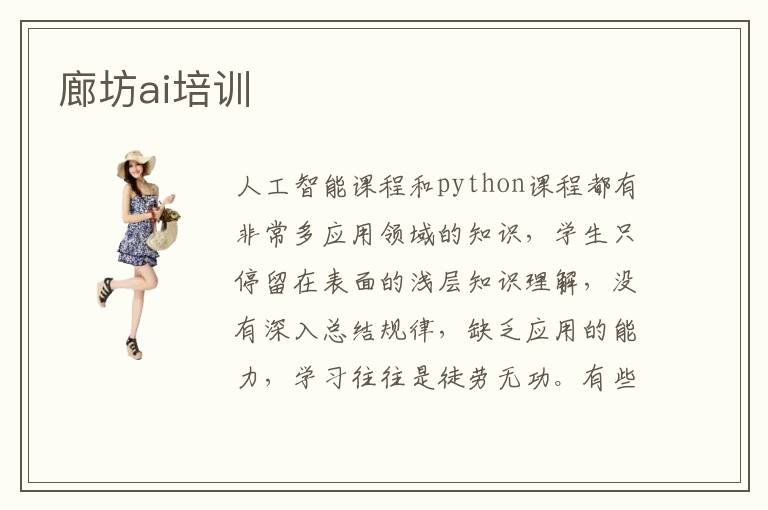 人工智能课程和python课程都有非常多应用领域的知识,学生只停留在表面的浅层知识理解,没有深入总结规律,缺乏应用的能力,学习往往是徒劳无功。有些学生喜欢避免这一些状况,所以会考虑廊坊ai培训机构,获得更多显著进步。ai小班辅导针对性特别强,结合不同学习者的能力以及存在的疑问进行训练,然后通过有效的巩固措施以及做作业的方式进行查漏补缺,从而保障不错的人工智能和python专业学习效果。ai培训优势有哪些,主要是能力很强,拥有多种教学配套设施和应用资源,促进学员不断获得显著的进步。另外,老师更加注重学生的人工智能课程应用水准和学习能力,针对学员的问题授课以及分析,所以学生很快即可了解学习方向和自身的人工智能课程薄弱环节。
