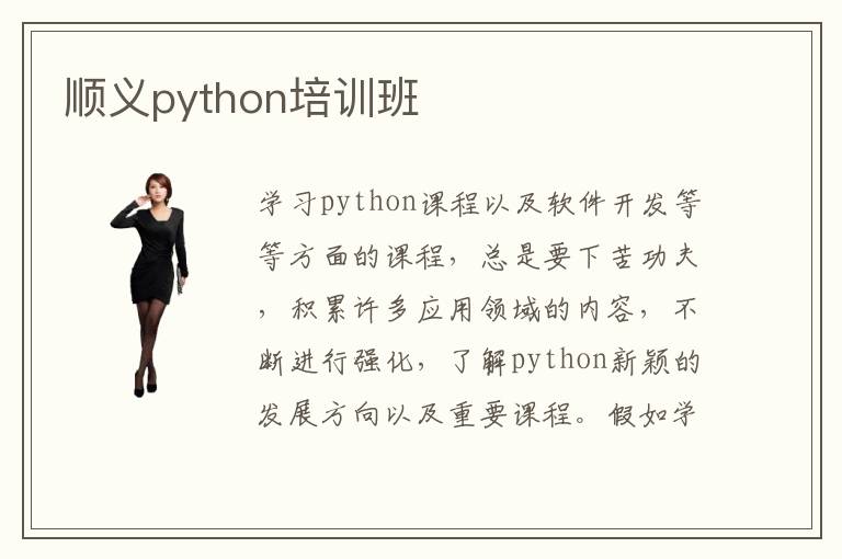 学习python课程以及软件开发等等方面的课程,总是要下苦功夫,积累许多应用领域的内容,不断进行强化,了解python新颖的发展方向以及重要课程。假如学生总是停留在python理论方面的课程,没有进一步优化个人的python应用水准,python专业技能优势很难凸显,就业价值会比别人低很多。顺义python培训班是计算机学生很喜欢的辅导机构,主要原因是培训班的课程重要,能力也很强。python基础培训班可采用个性化教学和多元化培训的方法,为学生介绍重点课程和培训项目,减少学生对python课程的学习压力。python培训班有没有必要,python课程也是有必要的,尤其是许多学生刚刚起步,对一些基础的学习大纲、理论知识、应用知识都不太了解。要是得到专业辅导班的严格教学,学习目标会更明确。