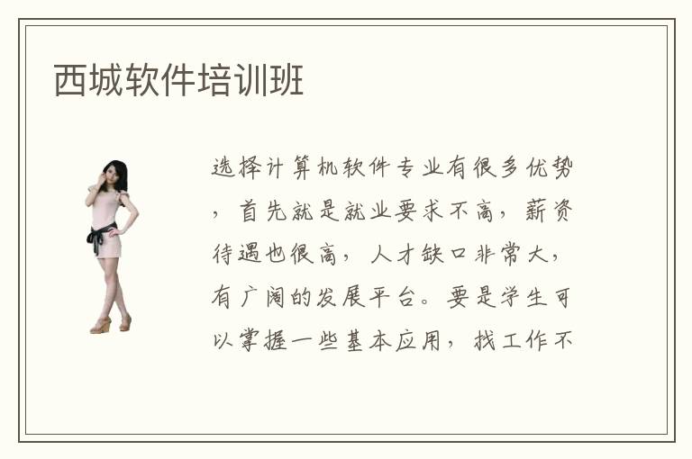 选择计算机软件专业有很多优势,首先就是就业要求不高,薪资待遇也很高,人才缺口非常大,有广阔的发展平台。要是学生可以掌握一些基本应用,找工作不成问题,若是可以在此基础上不断优化,强化个人的技术能力,往往会有相当理想的薪资水平。有的学生感觉软件很难懂,虽然说理想很丰满,但是现实很骨感,长期停留在原有的基础,无法突破专业技术,不得不考虑西城软件培训班。软件培训班指导方法主要是在线网络的辅导、一对一辅导以及实践辅导等等。其实多数学习方法都很有用,培训机构在指导之前,会进行检测,针对学员的能力和软件技术水平,制定科学的教学方案,促使学生懂得更多专业知识,将各种专业技能灵活运用起来,充分体现出软件培训班效果。