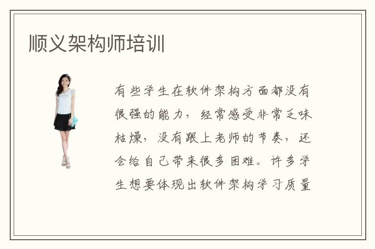 有些学生在软件架构方面都没有很强的能力,经常感受非常乏味枯燥,没有跟上老师的节奏,还会给自己带来很多困难。许多学生想要体现出软件架构学习质量,但缺乏老师的有效辅导,不得不报名顺义架构师培训机构,由老师进行课程设置,完善学习的结构和基础内容。架构师培训多少钱,软件架构师的培训费用跟大家选择的课程以及辅导的时间是有关系的,假如选择基础性的入门级教学课程,学习难度有点低,学习时间会比较短,所以报名费用可能就会更低一点。架构师应用培训有相当重要的作用,首先是优化个人的技术能力,完善学习体系,因为有的学生在传统学校只有理论学习,没有真正的应用实践,工作岗位上往往是一头雾水。得到计算机训练班的辅导之后,会有一些变化的效果。