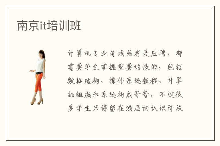 计算机专业考试或者是应聘,都需要学生掌握重要的技能,包括数据结构、操作系统教程、计算机组成和系统构成等等。不过很多学生只停留在浅层的认识阶段,没有深入的理解,学习进展特别慢,所以考试和找工作的效率并不高。若是希望得到更好的技术学习效果,虽然除了自学以外,可以参加南京it培训班,老师可提供许多计算机学科的专业课的训练,使大家综合理解专业基础知识,分析各种计算机应用的难题,真正达到解决问题的效果。it培训班如何,软件辅导机构的技术含量高,制定非常多系统的IT教学方案,而且不少老师还会提供1对1的个性化地方方案,使大家更快了解自己的问题所在,找到需要弥补的薄弱科目和技术环节,因此能够充分凸显出it培训班专业水准。