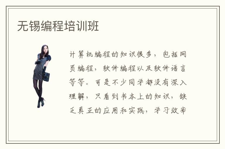 计算机编程的知识很多,包括网页编程,软件编程以及软件语言等等。可是不少同学都没有深入理解,只看到书本上的知识,缺乏真正的应用和实践,学习效率会非常低。无锡编程培训班可以提供许多实践课程,为大家展示重要的计算机编程学习方案,减少学习过程的负担。编程培训班如何选,选择计算机编程培训班时,可以多关心教育的方法、培训内容、辅导口碑等。有些学校的教学口碑很不错,积累很多年的经验,也会制定很完善的课程,学生收获会大很多。编程培训班报名多少钱,培训班报名费因人而异。部分同学基础薄弱,选择基础性的软件编程课程,因此收费可能更便宜。但也有部分的同学基础很好,应用经验非常丰富,想要进一步提升,因此选择高级的软件编程课程,费用会更高。