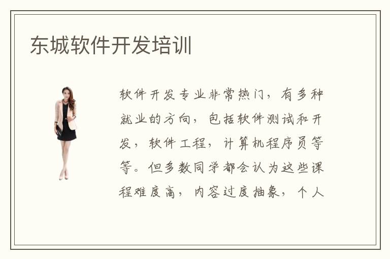 软件开发专业非常热门,有多种就业的方向,包括软件测试和开发,软件工程,计算机程序员等等。但多数同学都会认为这些课程难度高,内容过度抽象,个人理解能力有限,无法提高工作技能,因此会花时间参与东城软件开发培训。软件开发培训报名多少费用,大概收费是3000~8500元,其实辅导机构课程很多,而且资源和老师的水准不同,所以收费会有变化。软件开发课程难吗,软件开发课程确实有点复杂,但多数知识都有内在的规律,需要同学掌握理论和技术应用。当然很多同学缺乏专业设备,没有良好的训练资源,学习进度特别慢,无法提高应用成绩,而软件开发辅导班可以提供专业应用设备,结合优质资源,为大家呈现软件开发的真正应用过程,也能让同学有根据具象化的理解。