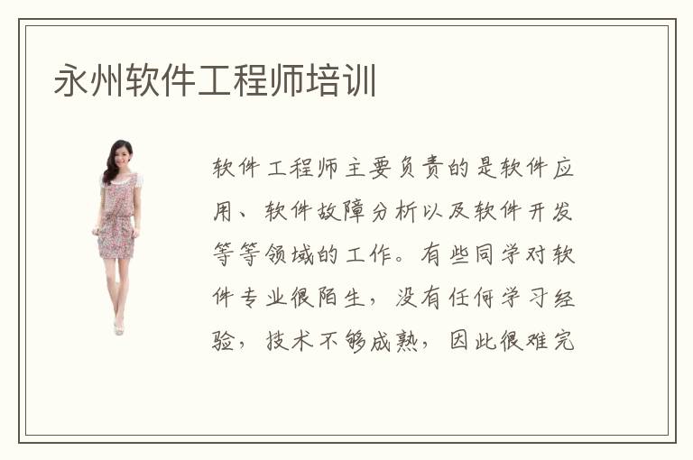 软件工程师主要负责的是软件应用、软件故障分析以及软件开发等等领域的工作。有些同学对软件专业很陌生,没有任何学习经验,技术不够成熟,因此很难完成软件工程师的相关工作。为了提高个人实力,高效率完成软件工程的项目,同学可参加永州软件工程师培训,要老师安排重要的软件工程应用课程,使得学生更快达到软件工程师要求。软件工程师类型比较多,同学在学校可以针对这些类型,选择学习的方式,比较常见的有高级软件工程师,助理软件工程师以及软件技术专员等等。要是认为个人实力非常有限,可以从助理软件工程师开始,积累更多的实战经验。当然有些技术人员在软件工程专业领域方面有多年经验,可以完成各种复杂的技术和项目,可以选择高级的软件工程师岗位。