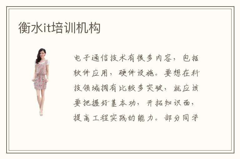 电子通信技术有很多内容,包括软件应用,硬件设施。要想在科技领域拥有比较多突破,就应该要把握好基本功,开拓知识面,提高工程实践的能力。部分同学觉得这些课程太难,花了很长时间都没有见过效果,所以想寻找衡水it培训机构,由老师介绍这些基础课程,提高计算机应用的实力。it行业前景非常广阔,主要是因为专业技术一直都在发展,进步速度很快,每年都有新的学科和重点技术,同学要把握好技术发展动态,了解前沿知识,从而拥有更多进步空间。假如同学认为学习负担太重,或者是跟不上专业发展,老师都可以帮助大家扫除这些烦恼。it课程有哪些,主要的课程有电子设计,计算机体系结构,数据结构,数字逻辑等等。这些课程都是很重要的,展示出个人的能力和真正的应用价值。