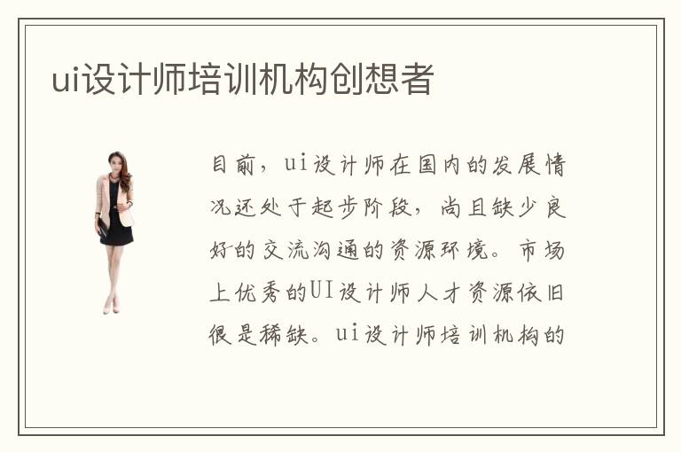 目前,ui设计师在国内的发展情况还处于起步阶段,尚且缺少良好的交流沟通的资源环境。市场上优秀的UI设计师人才资源依旧很是稀缺。ui设计师培训机构的成立存在极大的必要性,至于,为什么会有那么多人愿意花费时间金钱和精力去投资创办UI设计师培训机构,这个问题还是有待商榷的。UI设计师培训机构创想者创立者怎么样?ui设计师培训机构设立初衷是什么?