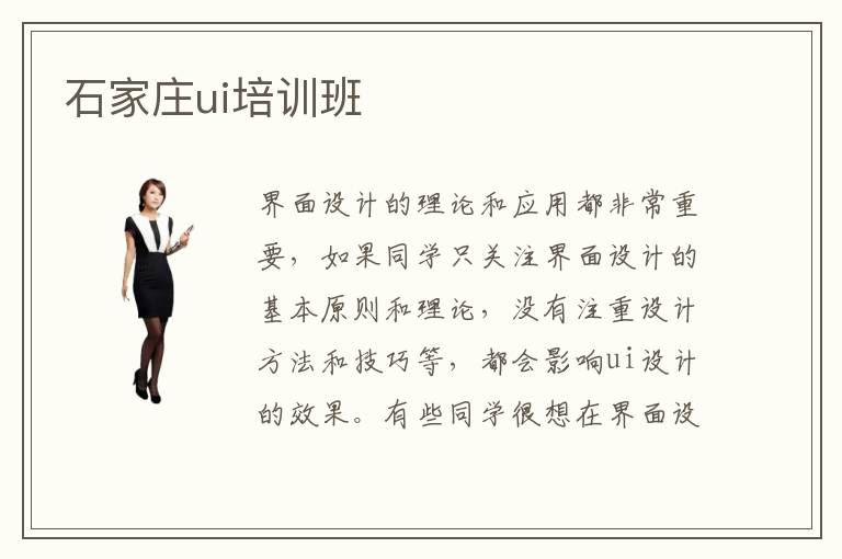 界面设计的理论和应用都非常重要,如果同学只关注界面设计的基本原则和理论,没有注重设计方法和技巧等,都会影响ui设计的效果。有些同学很想在界面设计获得优越的竞争力,但没有系统的训练,确实很难在技术方面有突出的表现。这时可选择石家庄ui培训班,老师可介绍重点ui设计的培训项目,培养更多优秀的实用性人才。ui培训班零基础教程特别适合刚入门的同学,老师会根据大家的基础,安排基础性的课程,也会控制好设计培训的速度。使大家可以拥有更多时间去学习,提高ui技术的成绩和设计效率。ui培训班哪些好,选择ui培训班应看看教学能力、培训方法以及辅导方案。有些ui学校的教学内容非常全面,培训方法也特别科学,可以结合大家的学习习惯来培养。