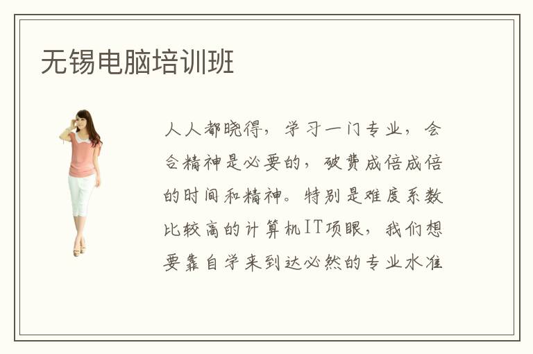 人人都晓得,学习一门专业,会合精神是必要的,破费成倍成倍的时间和精神。特别是难度系数比较高的计算机IT项眼,我们想要靠自学来到达必然的专业水准是有难度的,以是议决无锡计算机培训班进而接管专业的培训,这给我们省下了走更多曲路的时间,学习效力很大程度地挑升。计算机培训学校无锡分校首要有哪些优异一点的机构无锡计算机培训费用大提要多少钱无锡计算机培训班推荐电脑学校