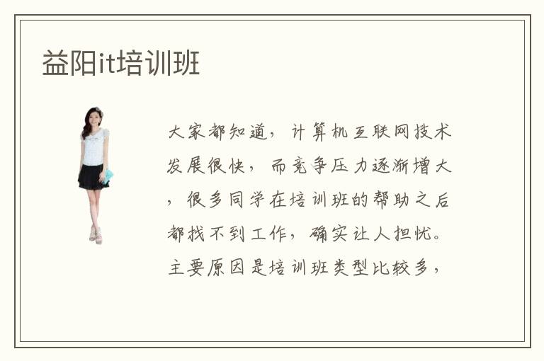 大家都知道,计算机互联网技术发展很快,而竞争压力逐渐增大,很多同学在培训班的帮助之后都找不到工作,确实让人担忧。主要原因是培训班类型比较多,质量参差不齐,如果不小心找到不靠谱的专业技术辅导班,成绩当然上不去。但如果找到优质的益阳it培训班,老师全程监督和教学,为大家带来更好的技术训练,成绩会有更好的凸显,更快展示个人的学习优势。其实要找到好的技术培训班并不是很难,学生可看看it培训班的教学方法,培训内容以及辅导时间安排。都有很多学生平时习惯于大班教学,不太了解小班教学的作用,可以到辅导班适当尝试一下,体验一下整体的学习氛围。it培训班能力往往很突出,虽然说不少同学没有系统训练,也不懂怎么应用,但老师会全面讲解。
