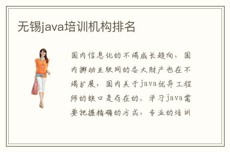 国内信息化的不竭成长趋向,国内挪动互联网的各大财产也在不竭扩展,国内关于java优异工程师的缺口是存在的。学习java需要把握精确的方式,专业的培训机构会给学生挑供最专业的讲授,是加快成为一位优异的java精英人材的最佳体例。那末,你晓得无锡java培训机构java培训机构排名嘛这里给人人推荐一下互联网培训学校无锡分校区,取得了列位学生的分歧好评。无锡java培训java培训机构排名推荐电脑学校