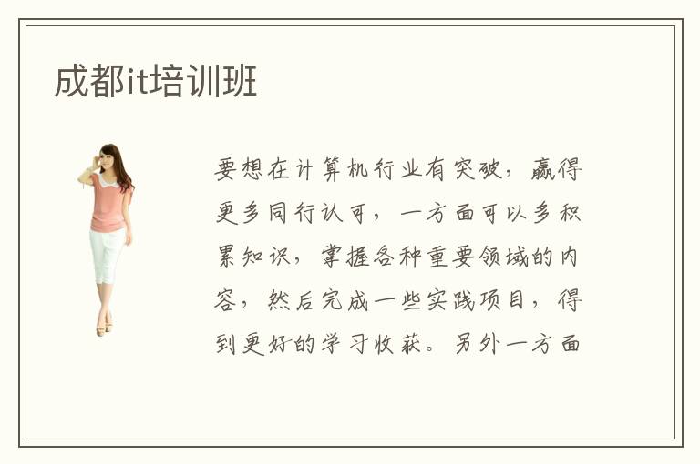 要想在计算机行业有突破,赢得更多同行认可,一方面可以多积累知识,掌握各种重要领域的内容,然后完成一些实践项目,得到更好的学习收获。另外一方面可以考取相关证书,比如计算机工程师、网络工程师等等认证资格,也能迅速得到更多技术认证的机会。成都it培训班会培养同学的计算机编程应用能力,在每一个领域都会有详细介绍,根据大家的技术薄弱环节和应用水准,安排相关的it课程。所以学生只要听指导老师的安排,努力学习课堂的技术,都会有显著进展。it培训班哪些好,it辅导班的类型比较多,要求也很严谨,可以培养大量专业人才。如果同学能力很差,刚刚起步,对计算机专业知识不理解,可着重挑选it培训班基础训练,一步一步积累,快速达到入门级状态。