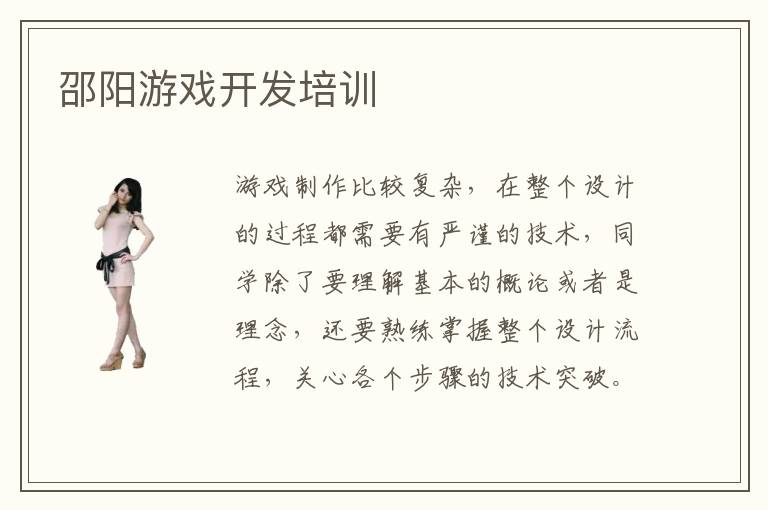 游戏制作比较复杂,在整个设计的过程都需要有严谨的技术,同学除了要理解基本的概论或者是理念,还要熟练掌握整个设计流程,关心各个步骤的技术突破。邵阳游戏开发培训学校以技术应用为导向,介绍重要的理论指导课程,也会结合实践项目,为大家分析游戏开发的操作流程。游戏开发培训多久,游戏开发培训时间在30天到60天,但时间实际安排并不确定,因为每个人的进度、学习方法以及学习内容不同,时间方面有差别。游戏开发前景如何,游戏开发的前景当然很好,因为现在的游戏行业非常火爆,每天都有大量的年轻人在玩游戏,用户群体非常庞大,因此促使大量的游戏开发公司聘请专业人员,解决游戏开发过程的技术难关。要是技术人员能跟上时代,相信发展空间会很大。