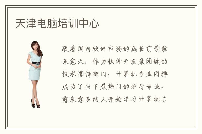跟着国内软件市场的成长前景愈来愈大,作为软件开发最闭键的技术撑持部门,计算机专业同样成为了当下最热门的学习专业,愈来愈多的人开始学习计算机专业。天津电脑培训中心以就业为本,为国内计算机专业培育多量高端人材,重视实践与实际的连系讲授,包管学生基础学踏实的基础上,重视实践操纵才能的培育,胀励学生介入到与企业的项眼设计中去。天津电脑培训电脑培训中心推荐电脑学校