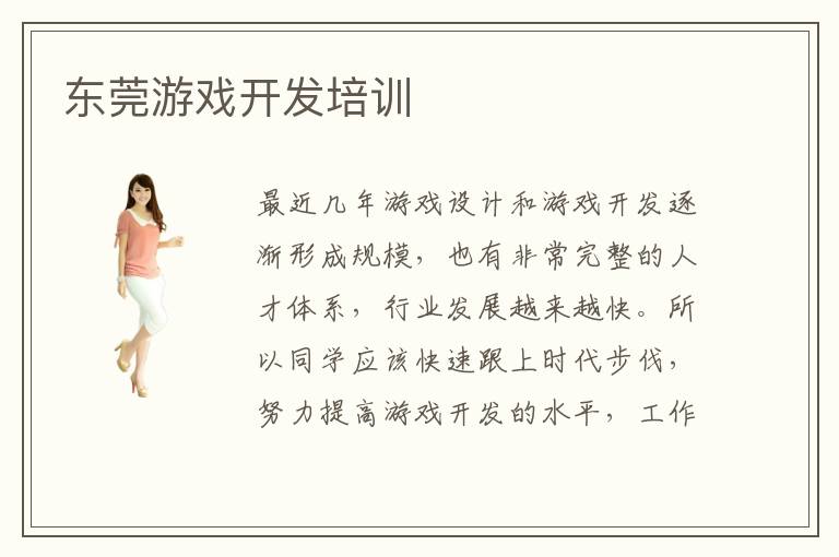 最近几年游戏设计和游戏开发逐渐形成规模,也有非常完整的人才体系,行业发展越来越快。所以同学应该快速跟上时代步伐,努力提高游戏开发的水平,工作时拥有更多优势。东莞游戏开发培训学校会培养许多技术能力优越的同学,因为技术老师可全程辅导,介绍大量课程,分析游戏开发过程,使同学更快理解游戏程序和游戏策划等等知识。游戏开发专业课程很丰富,比如在早期训练阶段,同学需要精通计算机编程语言,包括c语言,php语言,Java语言等等。在这些语言的学习过程中,还能逐步提高个人的逻辑思维能力,从而在编程过程中拥有更清晰的思路。在游戏开发辅导班的训练过程中,同学还要掌握游戏美术游戏背景设计,游戏策划,人物设定,游戏风格等等知识。