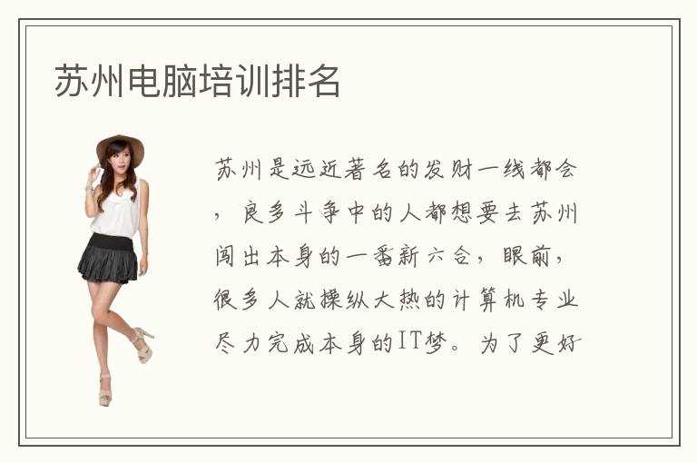 苏州是远近著名的发财一线都会,良多斗争中的人都想要去苏州闯出本身的一番新六合,眼前,很多人就操纵大热的计算机专业尽力完成本身的IT梦。为了更好地共同本身的成长水平,我们需要不竭地发掘本身的学习潜能,丰硕每个学生的人生经历。苏州电脑培训机构专业吗苏州电脑培训排名可靠吗苏州电脑IT教育口碑整体情况怎么样苏州电脑培训电脑培训机构有哪些呢苏州电脑培训排名推荐电脑学校