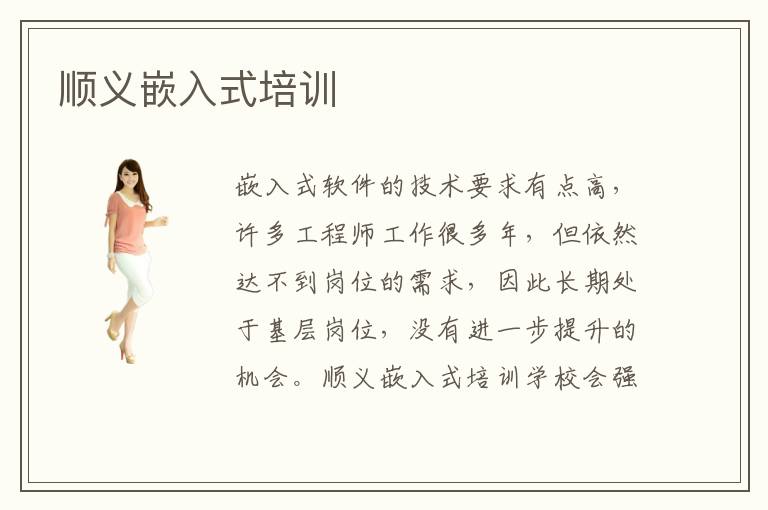 嵌入式软件的技术要求有点高,许多工程师工作很多年,但依然达不到岗位的需求,因此长期处于基层岗位,没有进一步提升的机会。顺义嵌入式培训学校会强化学员的工作技能,安排重点课程,采用多元化的辅导方式,丰富嵌入式软件课程的学习体验。嵌入式技术人员如何加薪,技术人员可以报名认证考试得到认证证书后,往往可以获得更高薪资。另外,也要多理解基础知识,掌握基本应用,提升个人的嵌入式开发技术能力,从而完成别人完成不了的任务。其实嵌入式软件的系统很复杂,功能也非常多,学生应该关注更多前沿技术,把握学习重点。另外,学习可能会有一些复杂的技术难题和知识重点,不要轻易放弃,而是要继续坚持,把握专业技术的重点,扫除应用的难关。