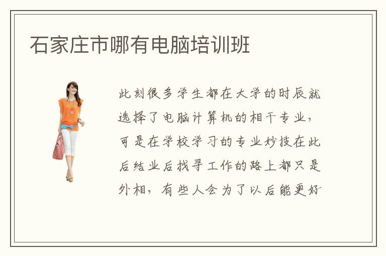 此刻很多学生都在大学的时辰就选择了电脑计算机的相干专业,可是在学校学习的专业妙技在此后结业后找寻工作的路上都只是外相,有些人会为了以后能更好的工作,会选择去一些计算机专业学校停止学习,把握更多的专业妙技相干常识。那末,石家庄市哪有电脑培训班呢接上去,我就来告诉人人一些在石家庄市的电脑培训班吧,仅供参考哦!石家庄市哪有电脑培训班推荐电脑学校