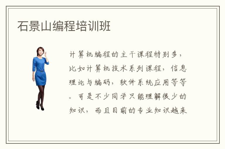 计算机编程的主干课程特别多,比如计算机技术系列课程,信息理论与编码,软件系统应用等等。可是不少同学只能理解很少的知识,而且目前的专业知识越来越多,更新速度越来越快。有的同学还没有赶上学习的进度,会影响后续的竞争,导致差距越来越大。石景山编程培训班可以分析很多行业的动态,也会介绍大量的技术教学内容,按照同学的能力和技术水平安排课程,大家可以学习很多重点的技术,扫清一些学习的难题。编程培训班哪些好,选择培训辅导班并不是很艰难,同学也可以看看技术内容,测试方法,培训的方式等等。编程专业要学什么,编程专业的同学除了要掌握本专业的学科外,也应该看看人工智能的计算开发以及桌面软件设计等等课程。不仅要知道理论知识,也要懂得应用。