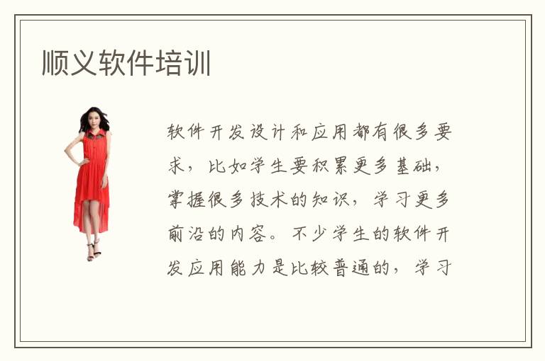 软件开发设计和应用都有很多要求,比如学生要积累更多基础,掌握很多技术的知识,学习更多前沿的内容。不少学生的软件开发应用能力是比较普通的,学习效率很低,长时间都发挥不了优势。为了改善软件成绩,学生不妨看看顺义软件培训,理解软件开发项目的内容,找到基础学习的技巧和方法。软件有哪些课程,软件专业课程其实非常丰富,首先同学要积累许多编程语言,包括python语言,Java语言,c语言。然后再针对这些语言的功能和使用环境,将其应用到工作场合中。软件培训时间比较短,不过部分学校可能会安排许多重要的软件开发设计课程,时间可能会延长。所以同学要认真掌握这些软件基础知识,分析动态和发展的趋势,然后针对不同的软件开发领域进行学习。