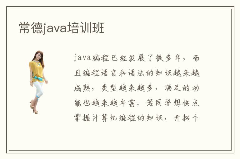 java编程已经发展了很多年,而且编程语言和语法的知识越来越成熟,类型越来越多,满足的功能也越来越丰富。若同学想快点掌握计算机编程的知识,开拓个人的学习思路和视野,不妨看看常德java培训班,相信经过一系列的java专项课程训练之后,成绩会有很好的保障。java兴趣指导班特别适合许多业余爱好者或是零基础的学生。有很多零基础的学员经验有限,学习动力不是很足,理解水平也不够高,如果盲目学习高难度课程,很难掌握具体的java专业内容。要是从兴趣指导课程开始,同学的动力也许会更充足。同学学习java编程知识时,还要多关注其他学科,尤其是数据分析,高级计算机算法,计算机网络应用等。因为这些技术内容本来就是综合性的学科,相互关联的程度非常高。