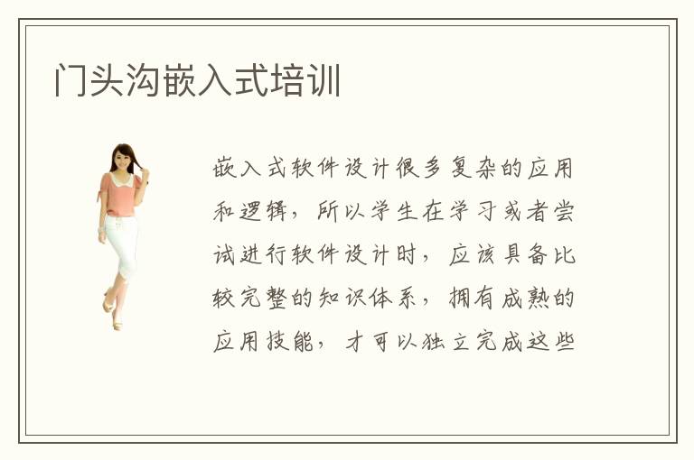 嵌入式软件设计很多复杂的应用和逻辑,所以学生在学习或者尝试进行软件设计时,应该具备比较完整的知识体系,拥有成熟的应用技能,才可以独立完成这些软件的项目。不少同学的软件知识结构都不够完善,而且在发展方向方面也很难做决定,所以学习进展很慢,目标很模糊。自从有了门头沟嵌入式培训机构的教学后,同学的职业技能优势更加显著,也能够找准发展的方向,对以后的就业和竞争都有重大的帮助。什么是嵌入式软件,嵌入式软件主要是将某些软件系统嵌入到某些硬件当中,因此可以实现可移动的功能,运行过程十分稳定,也能达到减少机器损耗。嵌入式培训老师的水准相当优越,首先在于具备多年经验,在工作岗位上有很专业的应用能力,可以为学生指明学习方向。