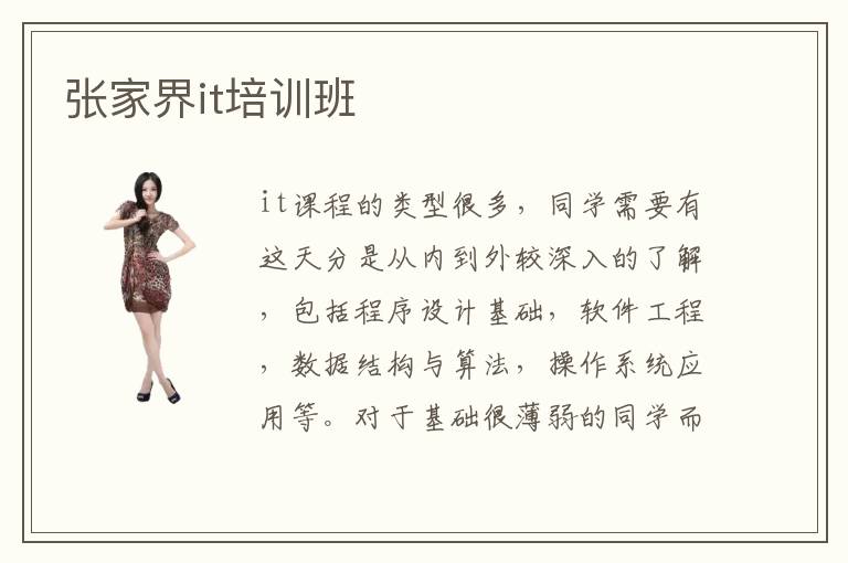 it课程的类型很多,同学需要有这天分是从内到外较深入的了解,包括程序设计基础,软件工程,数据结构与算法,操作系统应用等。对于基础很薄弱的同学而言,可能并不是很了解计算机编程的应用项目,学习能力比较糟糕,成绩也不够突出,会影响技术竞争力。而张家界it培训班也很关心同学的学习问题,然后再安排针对性的it技术辅导,使大家的it应用水准和基础能力更加优越,自然就不会出现很多学习的烦恼。it培训班的作用相当显著,比如辅导机构会分析it行业的动态,培养同学的逻辑思维,促使学生的逻辑更加缜密,知识应用水平更突出。it培训班哪些好,it辅导机构的综合实力和教学水准都是很重要的考虑因素,因为不少同学只关注费用问题,没有看看学校的教学经验和能力,很容易选择错误。