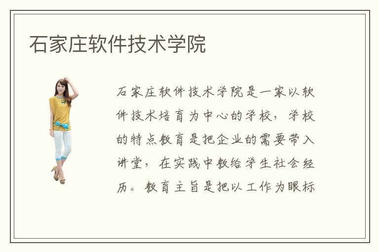 石家庄软件技术学院是一家以软件技术培育为中心的学校,学校的特点教育是把企业的需要带入讲堂,在实践中教给学生社会经历。教育主旨是把以工作为眼标的学生培育成今后企业工作中需要的人材,而且具有优异的讲授团队。看到这些介绍,我想你大概啊曾经心动了吧那末,你想晓得更多闭于石家庄软件技术学院的动静嘛心动不如步履,多多闭注石家庄软件技术学院吧。石家庄软件技术学院推荐电脑学校