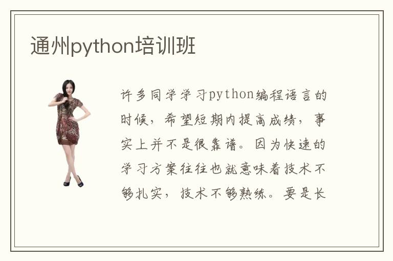 许多同学学习python编程语言的时候,希望短期内提高成绩,事实上并不是很靠谱。因为快速的学习方案往往也就意味着技术不够扎实,技术不够熟练。要是长时间追求效率,忽略学习的质量,容易漏掉许多重点。为了取得python编程语言方面的进步,要一步一个脚印,长时间积累,自然有显著的效果。另外,如果想提高学习效率,完善知识的结构,可以看看通州python培训班。老师可以把高效率的课程以及应用指导方案分享给大家,使大家积累更多有用的技能。python培训班有哪些好,其实python辅导班有良好的教学模式,教学质量不错,辅导的内容非常丰富。python专业课程多吗,部分python学校的教学速度很快,课程安排非常紧密,基本每天都有不同新的技术内容,同学吸收得也比较好。