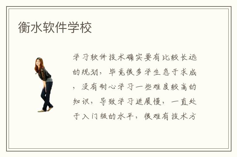 学习软件技术确实要有比较长远的规划,毕竟很多学生急于求成,没有耐心学习一些难度较高的知识,导致学习进展慢,一直处于入门级的水平,很难有技术方面的突破。为了提高软件专业的技术水准和学习能力,学生可参加衡水软件学校,了解各种软件应用的知识,分析学习软件专业的技巧和经验,提高学习优势。软件学校的课程难学吗,软件学校的课程比较轻松,难度并不是很高,因为老师也照顾同学的学习感受,在训练之前会适当降低难度,使大家理解更容易,学习效率也更高。软件学校网络指导具有重要价值,比如可以增强个人理解能力,有老师作为指导,分享软件行业的经验,解决软件应用的难题,同学的进步效果都会越来越好。而且网络指导的方式可以大大提高效率,减少运用的障碍。
