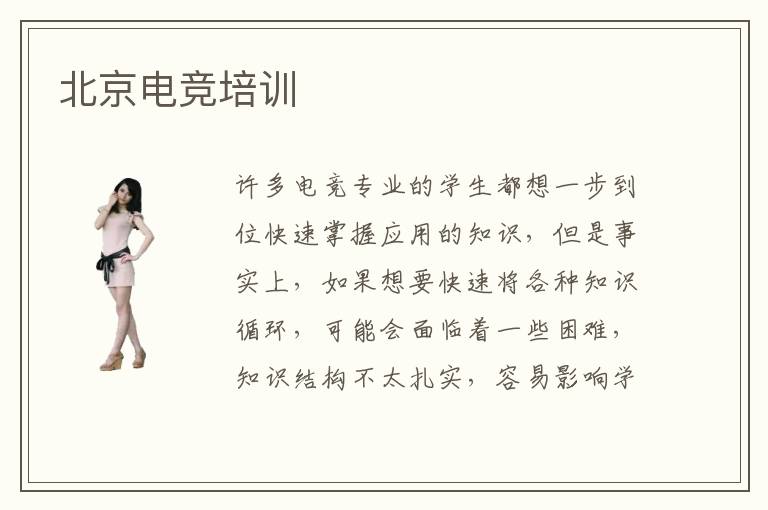 许多电竞专业的学生都想一步到位快速掌握应用的知识,但是事实上,如果想要快速将各种知识循环,可能会面临着一些困难,知识结构不太扎实,容易影响学习成果。如果想要有所进步,可以考虑北京电竞培训班。另外,不管选择哪些辅导班,都还是要有自己的判断和依据,根据各个行业的发展趋势安排具体课程,进步会显著很多。电竞专业可以找到工作吗,电竞专业可以找到很多工作,对于游戏开发人员以及电竞网络工程师、电竞解说员等等。但这些都是新型的技术岗位,所以大家要挖掘各种学习的措施,跟上时代步伐。电竞的自学方法特别好,首先是可以锻炼自己的思维能力,通过自己的方法应用到工作中,也可以得到一些帮助。但是若是觉得速度有点慢,自制能力不够强,还是要咨询一下老师。
