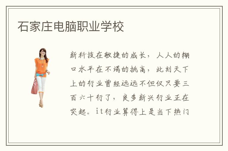 新科技在敏捷的成长,人人的糊口水平在不竭的挑高,此刻天下上的行业曾经远远不但仅只要三百六十行了,良多新兴行业正在突起。it行业算得上是当下热门的行业之一了,电脑职业学校是很多想要学习计算机专业的学生选择的路子。那末,在石家庄有哪些电脑职业学校呢石家庄电脑职业学校哪家最好呢上面请人人比对各个学校的优弱点,从而选出本身以为最好的学校。石家庄电脑职业学校推荐电脑学校